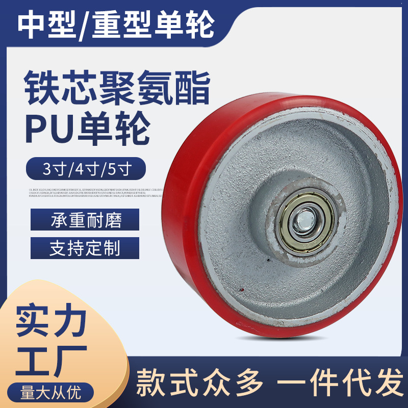 Penjualan langsung pabrik roda tunggal pu pu inti besi 4 inci 3-inci roda tunggal rol troli datar tahan aus