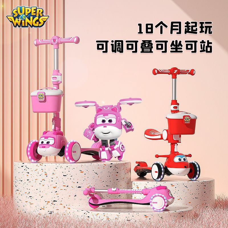 Skuter anak Super Wings untuk anak laki-laki dan perempuan usia 1-3-6 tahun, dapat dinaiki dan diduduki, sepeda keseimbangan tiga-dalam-satu