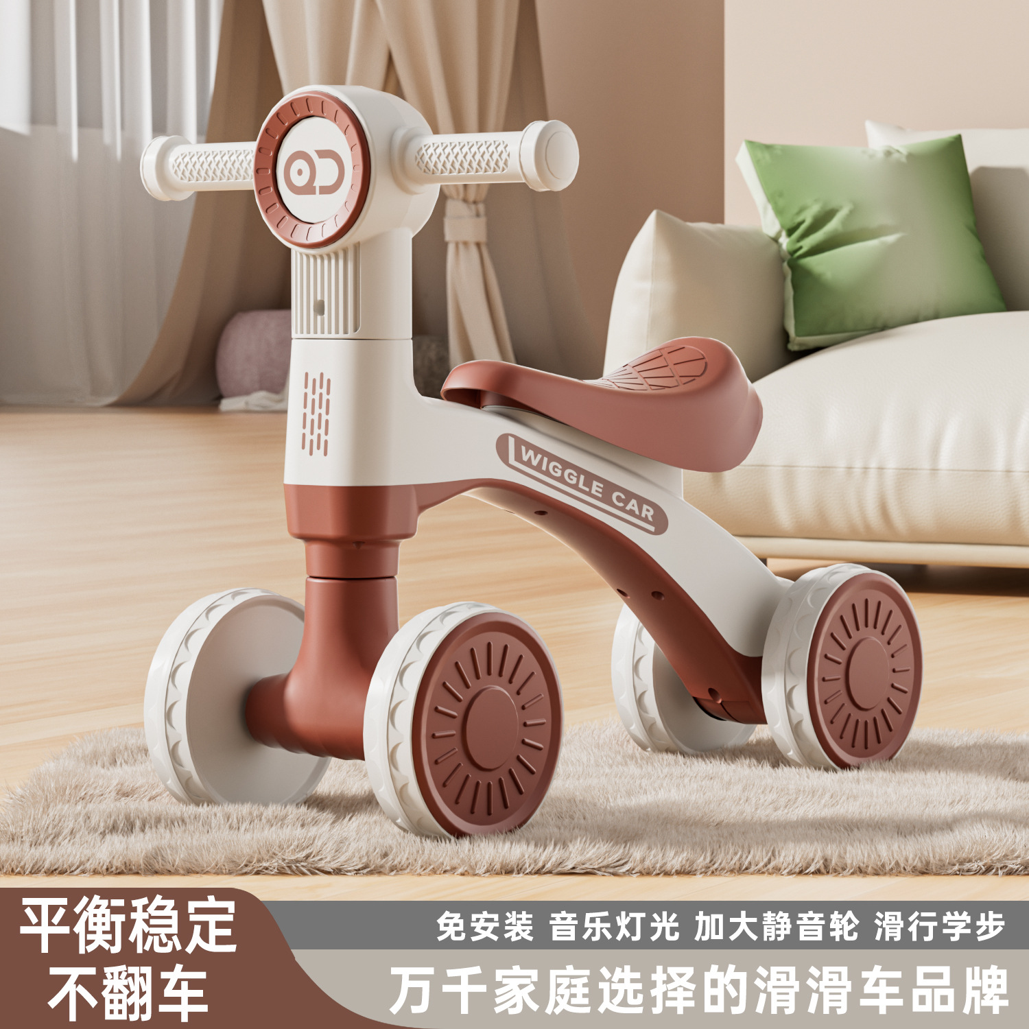 Mobil Geser Anak Model Baru 1-3 Tahun Bermusik Mobil Twist Bayi Belajar Berjalan Empat Roda Mobil Mainan