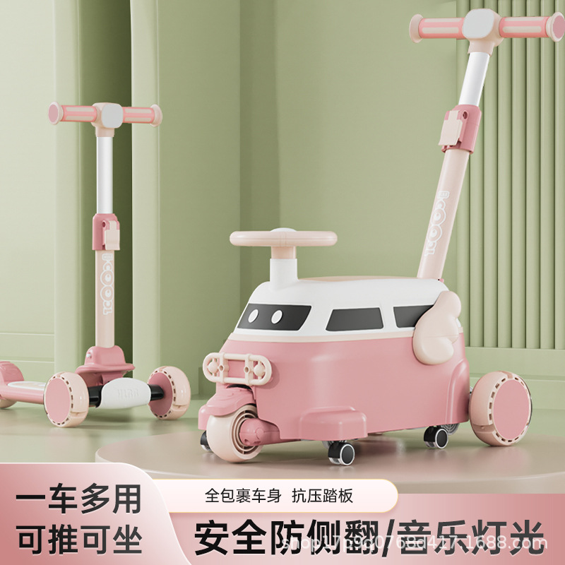 Skuter tiga dalam satu anak-anak, mobil mainan dapat dilepas anak usia lebih dari satu tahun dapat meluncur dan berjalan