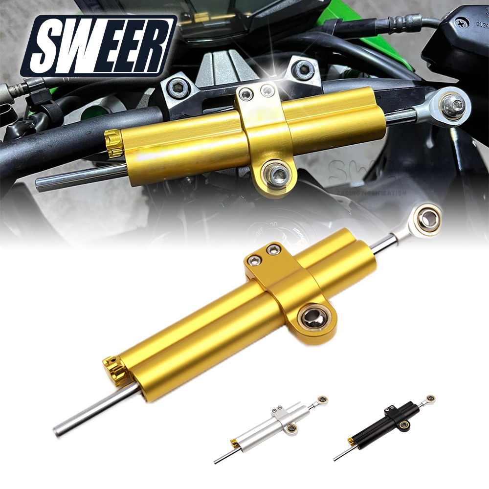 Aksesori modifikasi sepeda motor Universal, tabung ganda pendek titanium penggaris arah peredam anti ayunan kepala keseimbangan batang buffer
