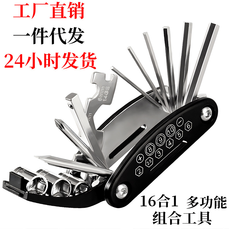 Peralatan sepeda soket obeng heksagonal, alat perbaikan sepeda lipat portabel multifungsi