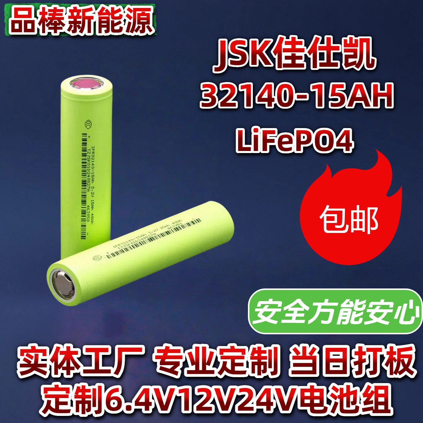 JSK Jiashi Kay 32140-15Ah Baterai Lithium Besi Fosfat 3.2V Baterai Lithium Luar Ruangan Penyimpanan Energi Sepeda Listrik