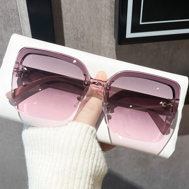 Kacamata hitam gaya baru 2025 satu potong tren TikTok kacamata tanpa bingkai untuk wanita gaya kacamata berujung trendi perlindungan UV.