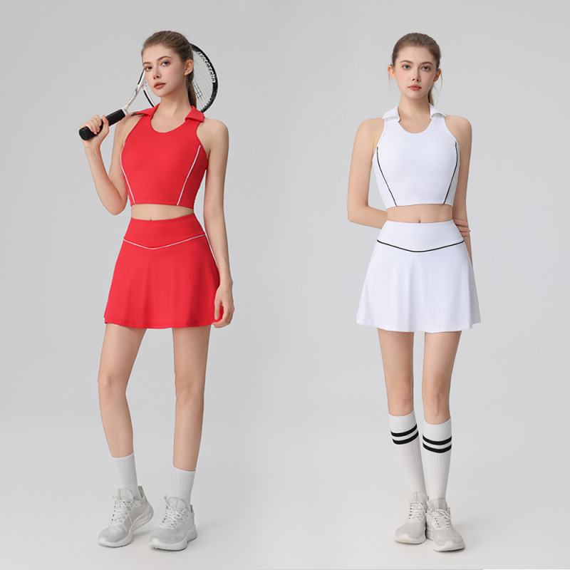 Bra Kebugaran Warna Kontras Model Baru Musim Panas Rompi Yoga Ketat Mengisap Keringat Bernapas Rok Tenis Olahraga Golf Set