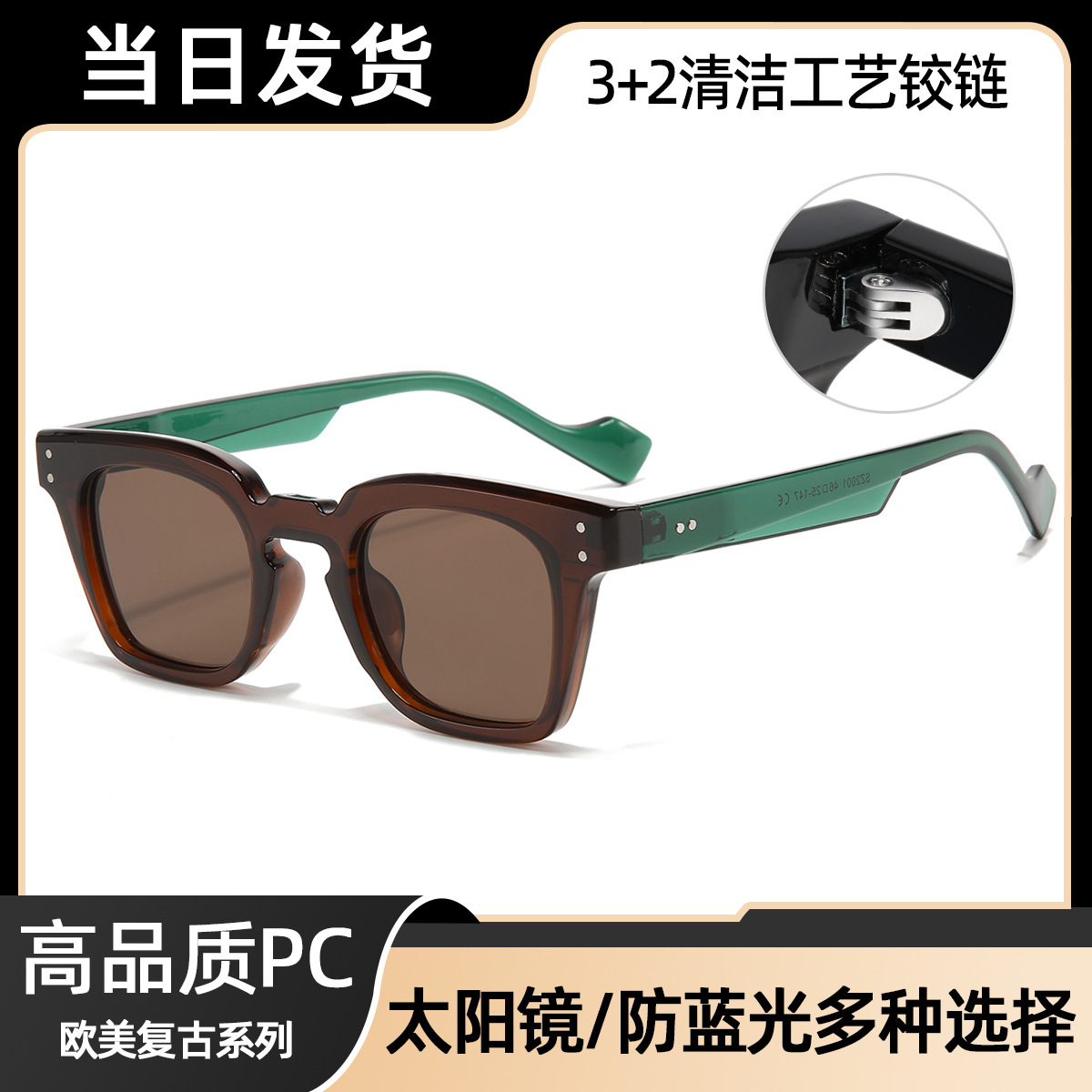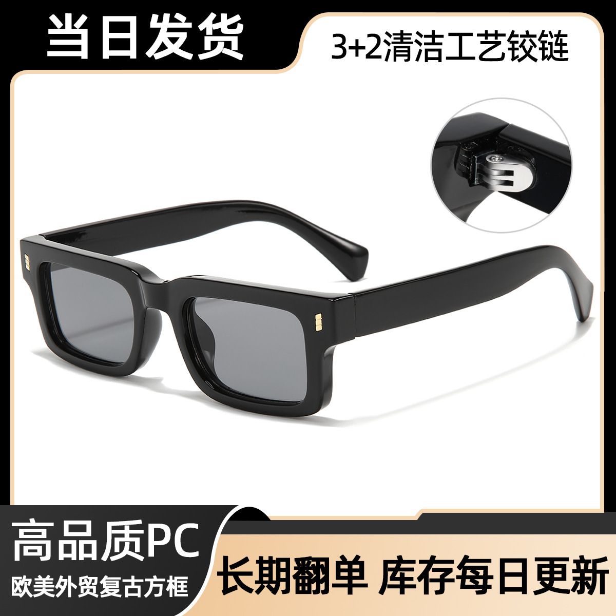 Kacamata Hitam Bingkai Persegi Retro Eropa dan Amerika Model Pria Kacamata Hitam Kelas Atas Wanita Trendi Modis Anti UV Perdagangan Luar Negeri Model Baru