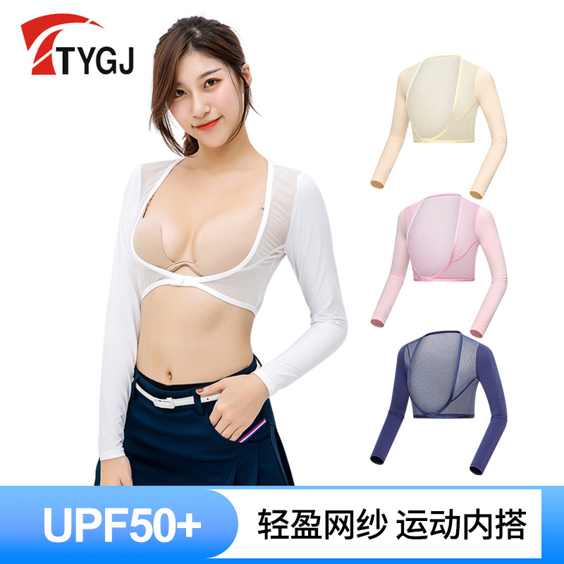 Sarung Lengan Pelindung Terik Matahari Wanita Golf Pakaian Dasar Pelindung Terik Matahari Luar Ruangan Lengan Panjang Bernapas Sutra Es Cepat Kering
