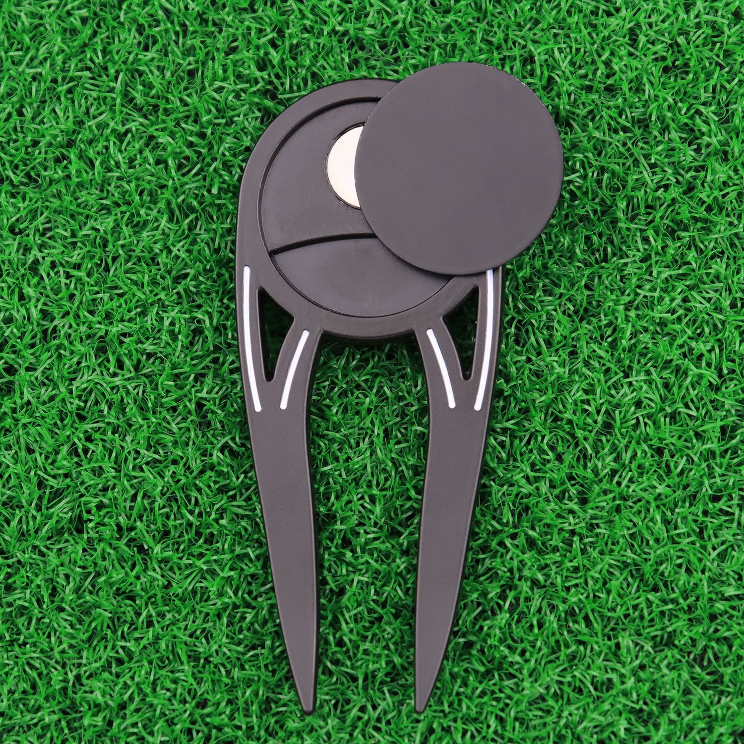 Garpu Golf hitam yang ada pembuka botol belakang aksesoris Golf garpu buah tanda garpu Golf