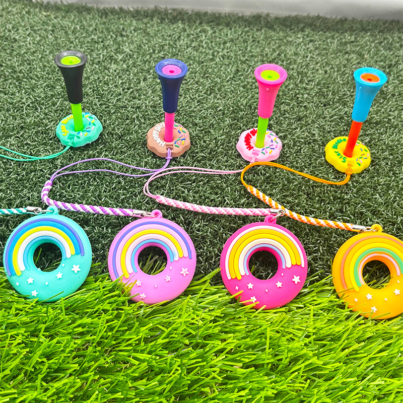Set Paku Bola Donat Warna Kartun TEE Bola Golf Set Paku Bola 83mm Kursi Bola Plastik Dengan Tali Anti Hilang
