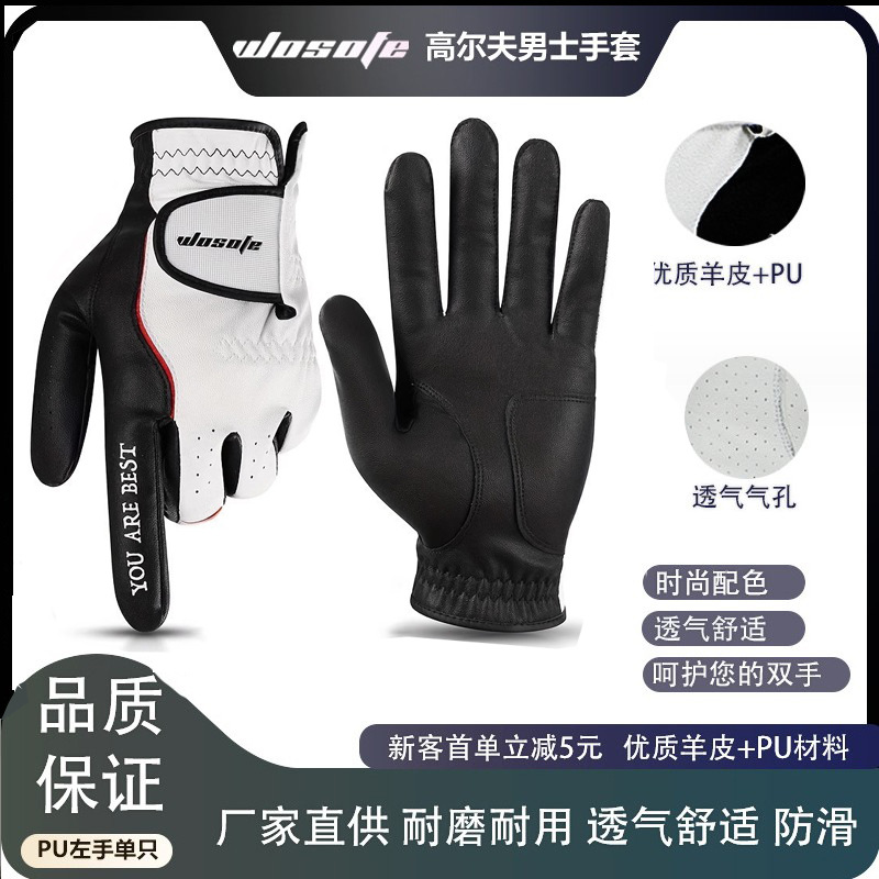 Sarung tangan golf pria, sarung tangan golf tunggal kulit PU lembut bernapas anti selip, sarung tangan lintas batas
