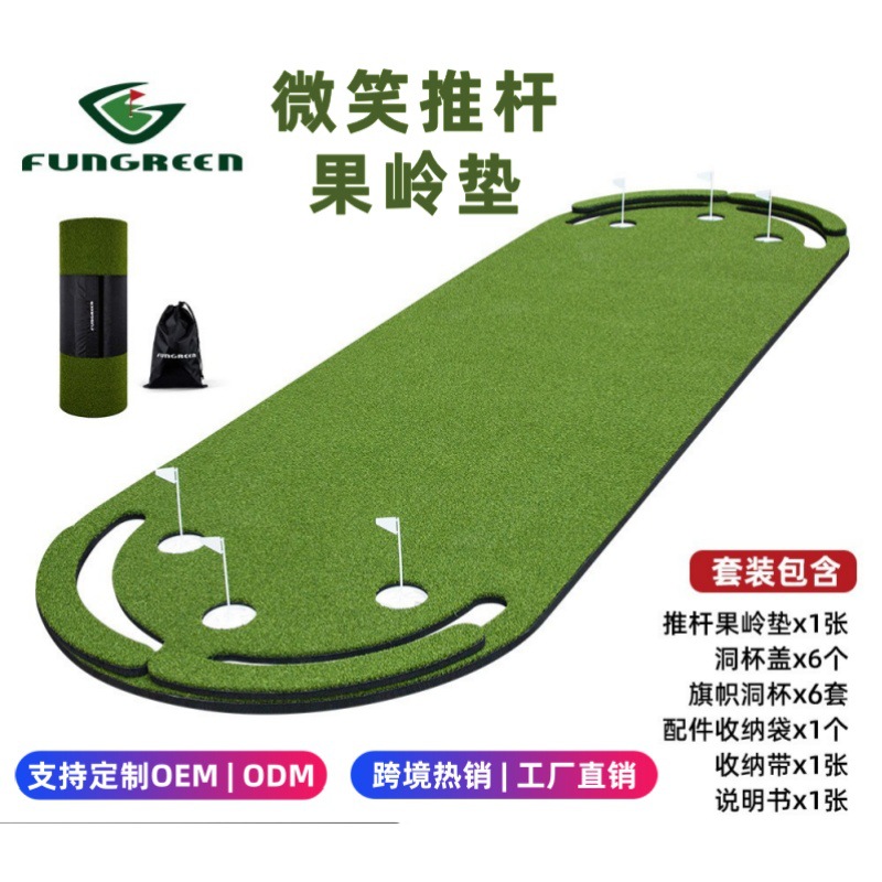 FunGreen putter golf, latihan putter dalam ruangan, selimut latihan keluarga luar ruangan warna hijau