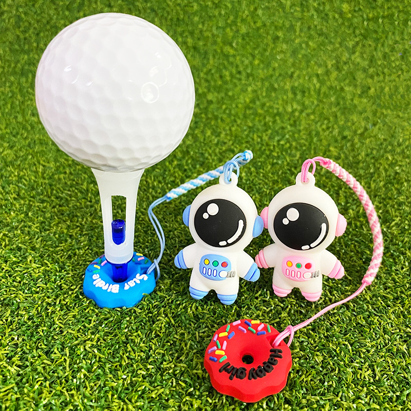 Paku Bola Golf 83mm Bola Plastik Tee Astronot Gambar Kartun Tali Buatan Tangan Tali Gantung Kursi Bola Anti Hilang