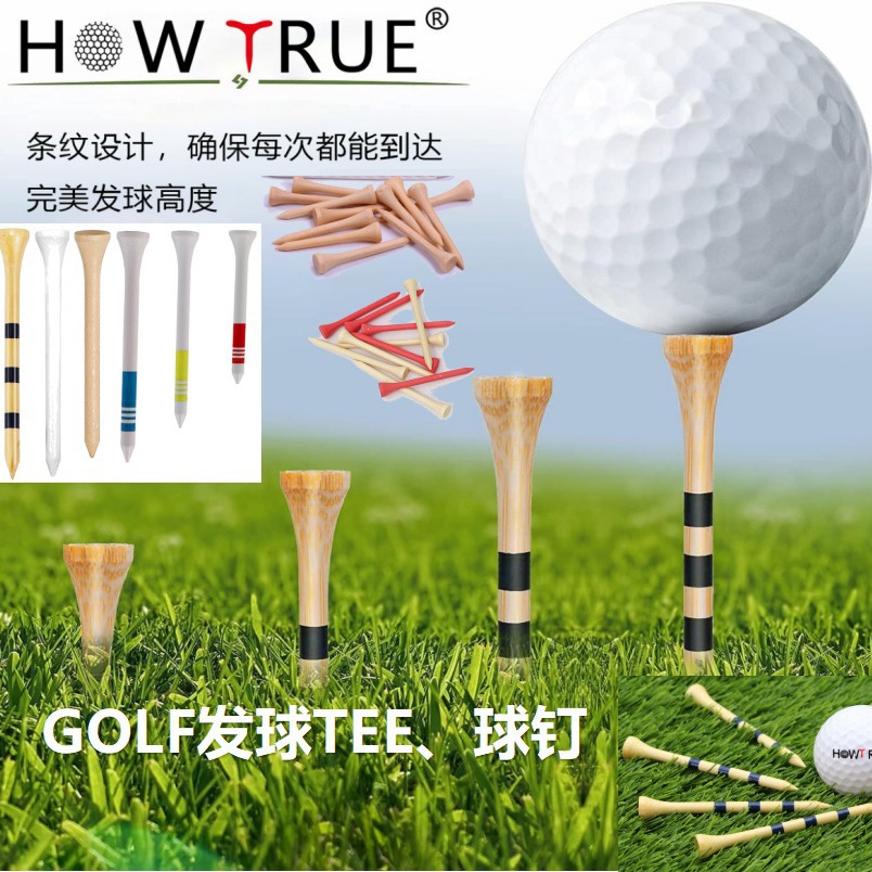 Produsen baru golf bambu bola kayu kuku bergaris tee bola pemegang golf bola dasar