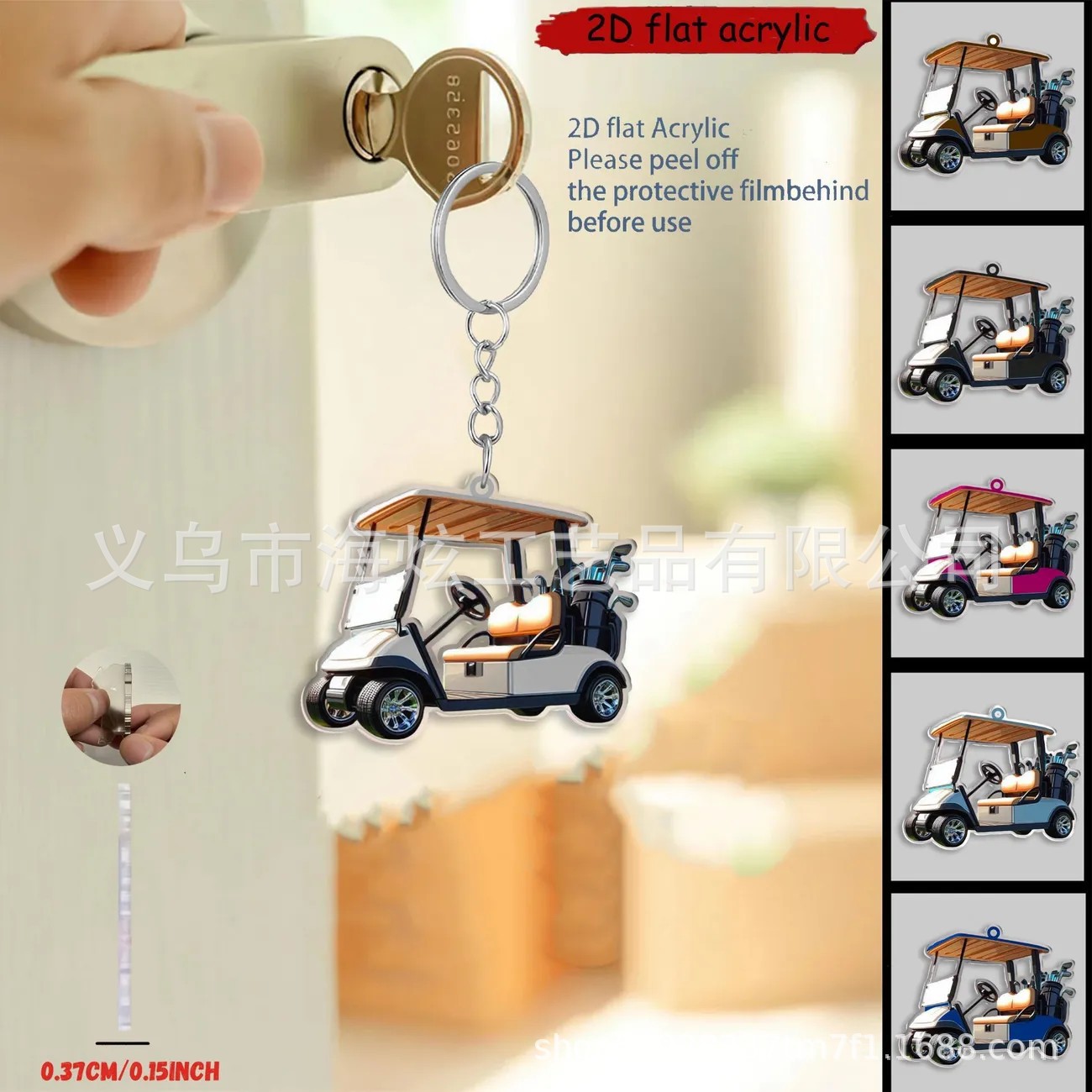 Lintas batas kreatif model baru 2D kartun mobil golf gantungan kunci akrilik ransel liontin datar hadiah liburan