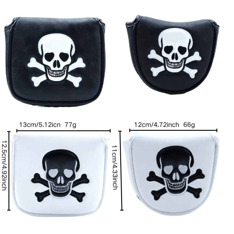 Penutup klub Golf tengkorak persegi setengah lingkaran penutup putter hitam dan putih dalam stok aksesoris golf