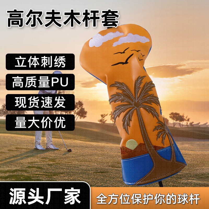 Pabrik Oranye Biru Kombinasi Pohon Kelapa Satu Set Topi Kayu Golf Headcover Tempat Set Tongkat Golf