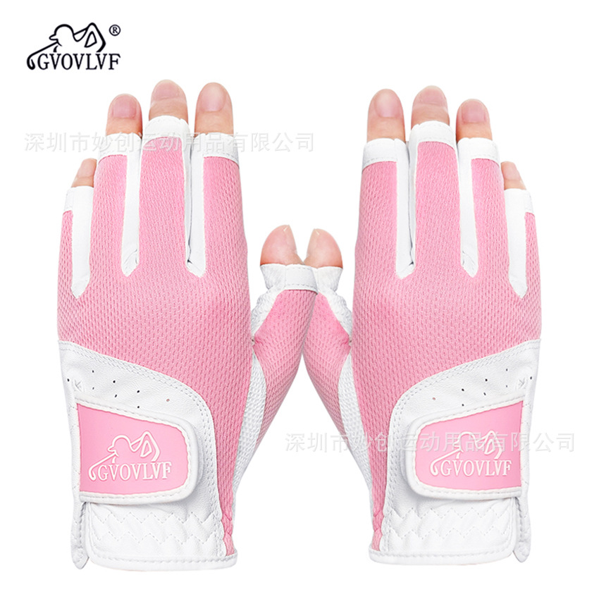 Sarung Tangan Golf Sarung Tangan Jari Terbuka Wanita Kain Jaring Bernapas Musim Panas Golf Sarung Jari Olahraga Pelindung Matahari Tangan Kiri dan Kanan