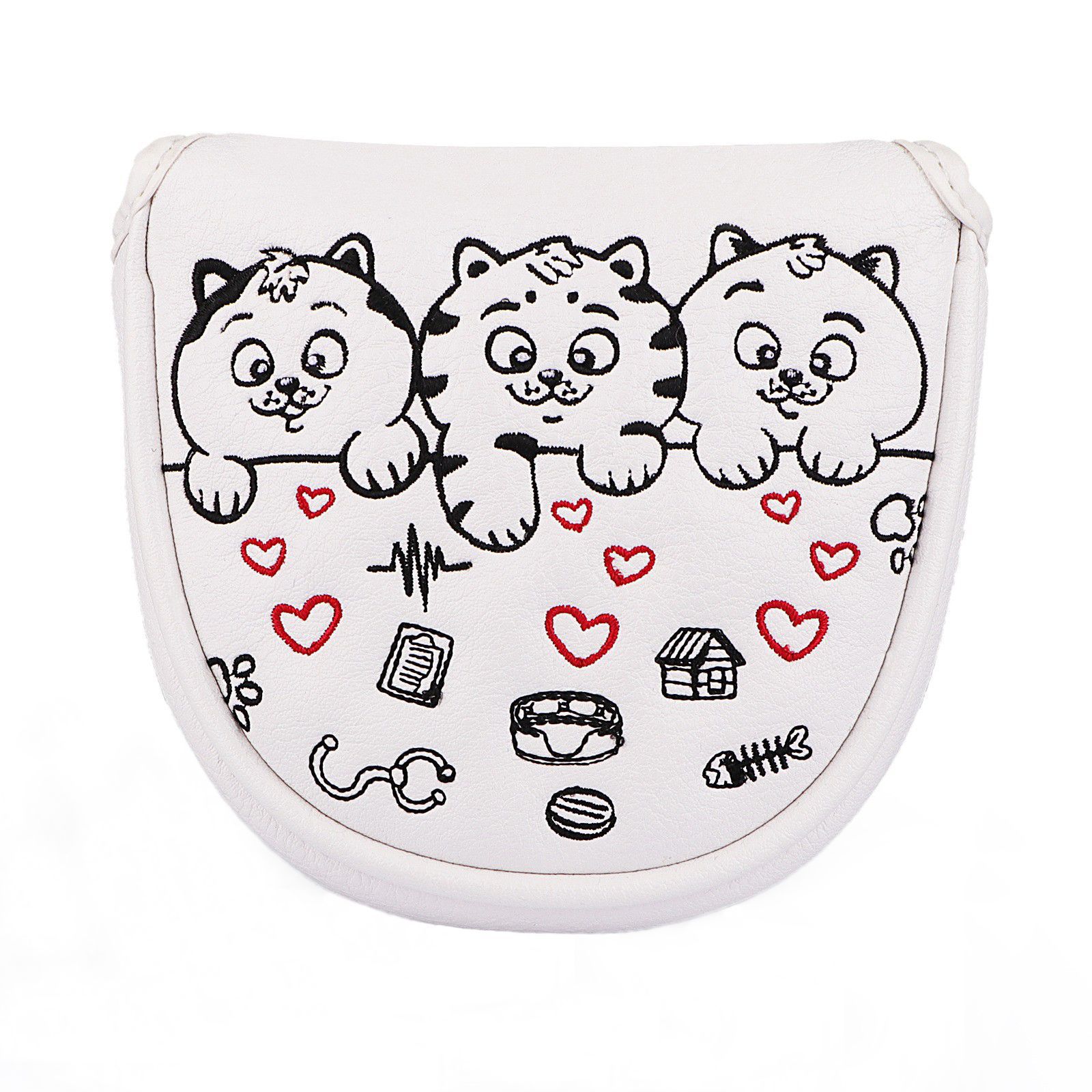Penutup putter golf motif kucing kartun lucu warna putih, siap kirim lintas negara, pelindung semi-lingkaran untuk kepala klub golf