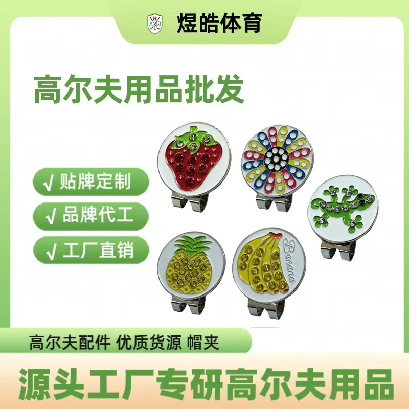 Kustom Buah Mark Fashion Multi Warna Golf Hoodie Jepitan Paduan Seng Lintas Batas Magnetik Dengan Berlian Logo Bola Hijau