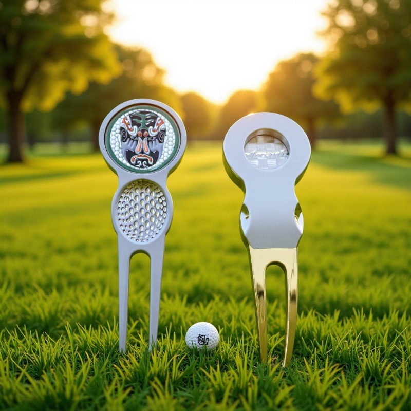 Garpu Guoling otomatis untuk Golf, garpu pembuka bola logam baja tahan karat dengan tanda bola kerajinan berbeda