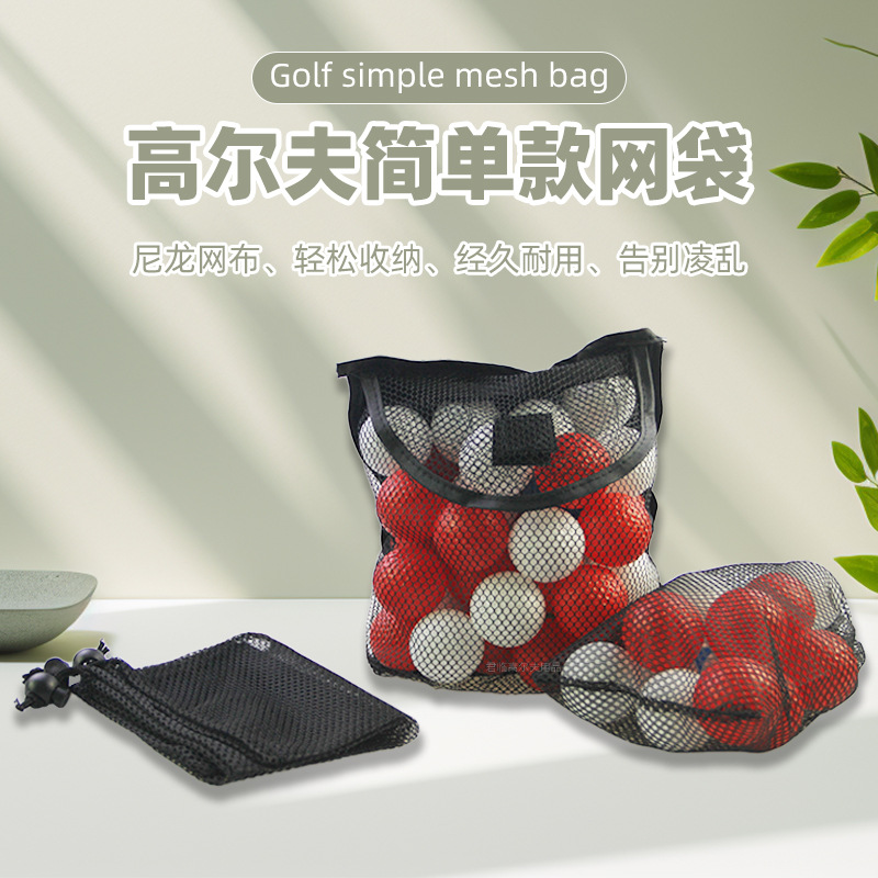 Tas Golf bola sederhana, tali serut Velcro penyimpanan mudah anti-penuaan tahan lama tas jala nilon