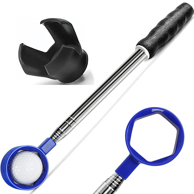 Alat pengambil bola golf, tongkat pengambil bola golf portabel teleskopik dari baja tahan karat, alat pengambil bola air