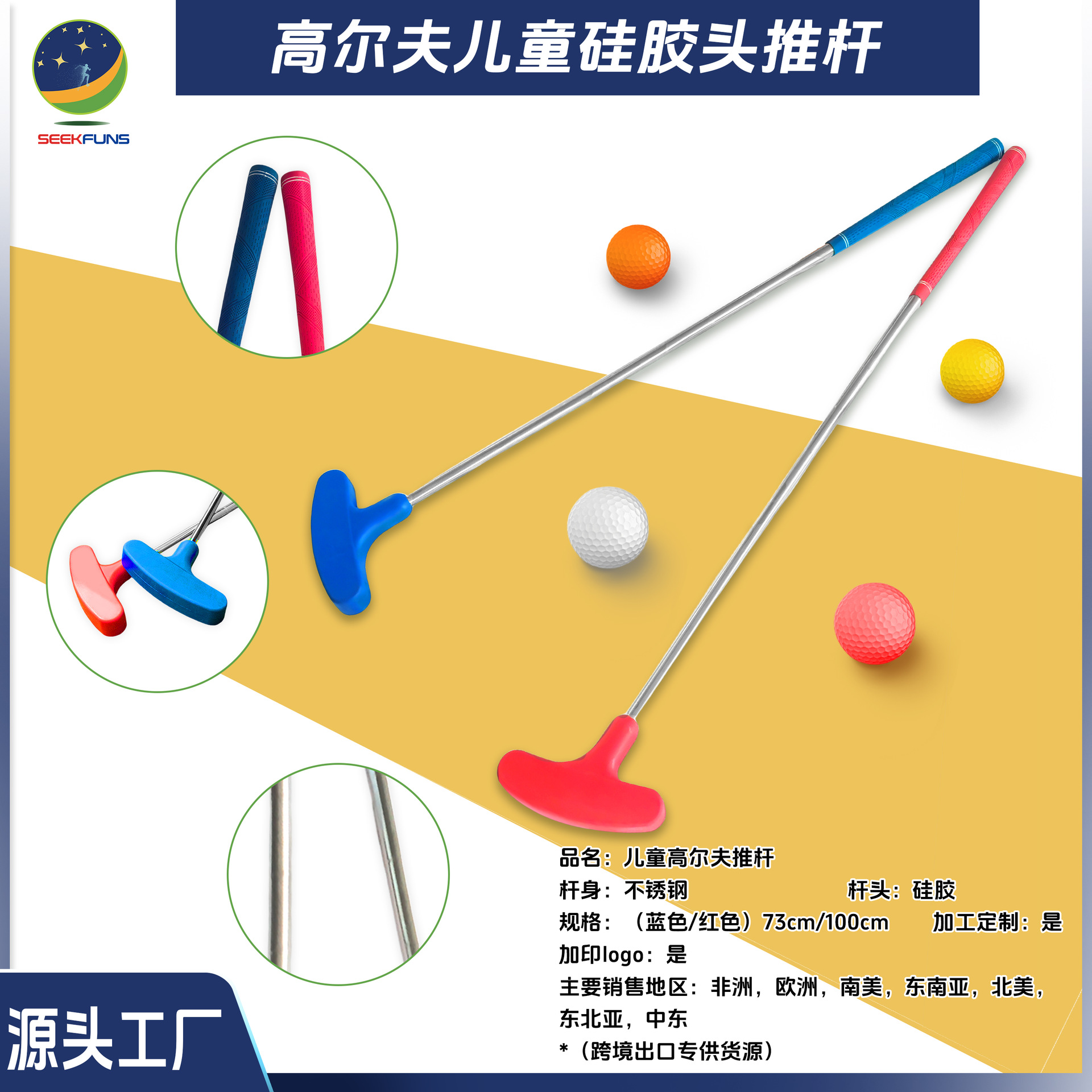 SEEKFUNS Mainan Anak Golf Silicone Dua Sisi Putter Lintas Batas Penjualan Hot Sale Golf Klub Produsen