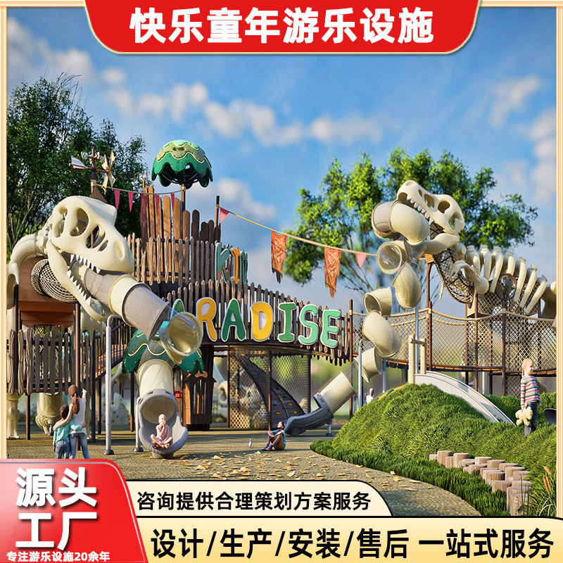 Taman Bermain Anak-Anak Seluncuran Dinosaurus Seluncuran Kombinasi Halaman Luar Ruangan Besar Seluncuran Fasilitas Bermain Tanpa Tenaga