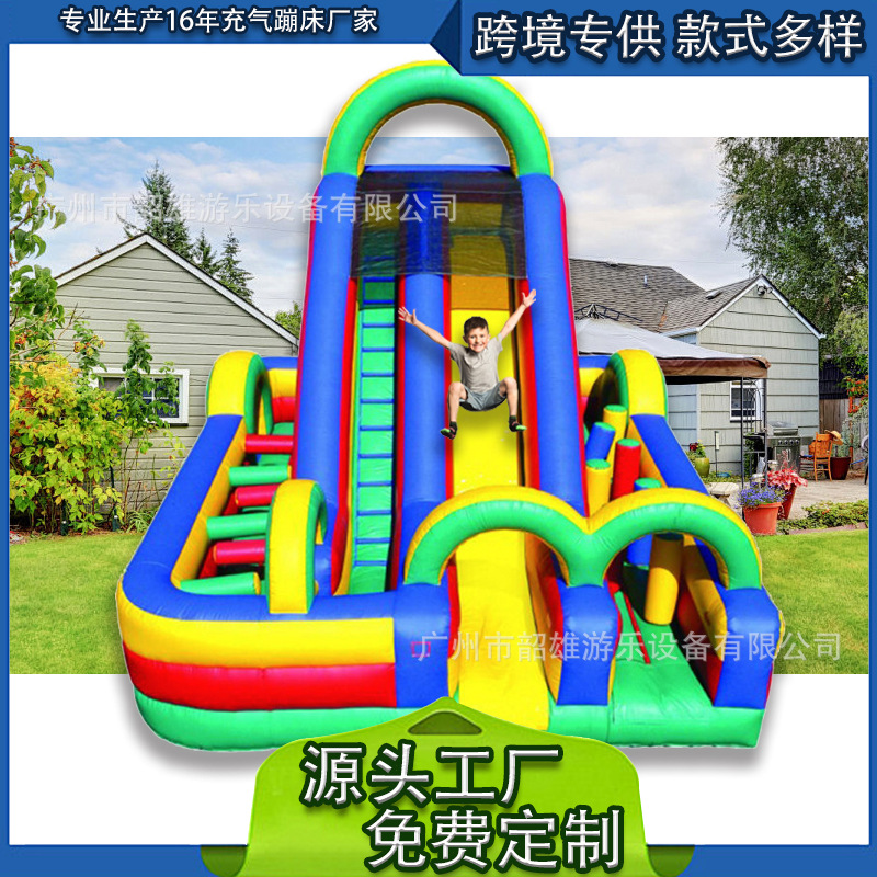 Pabrik Harga Outdoor Inflatable Hambatan Trampolin Taman Bermain Anak Dewasa Slide Besar Inflatable Bouncing Rumah Slide