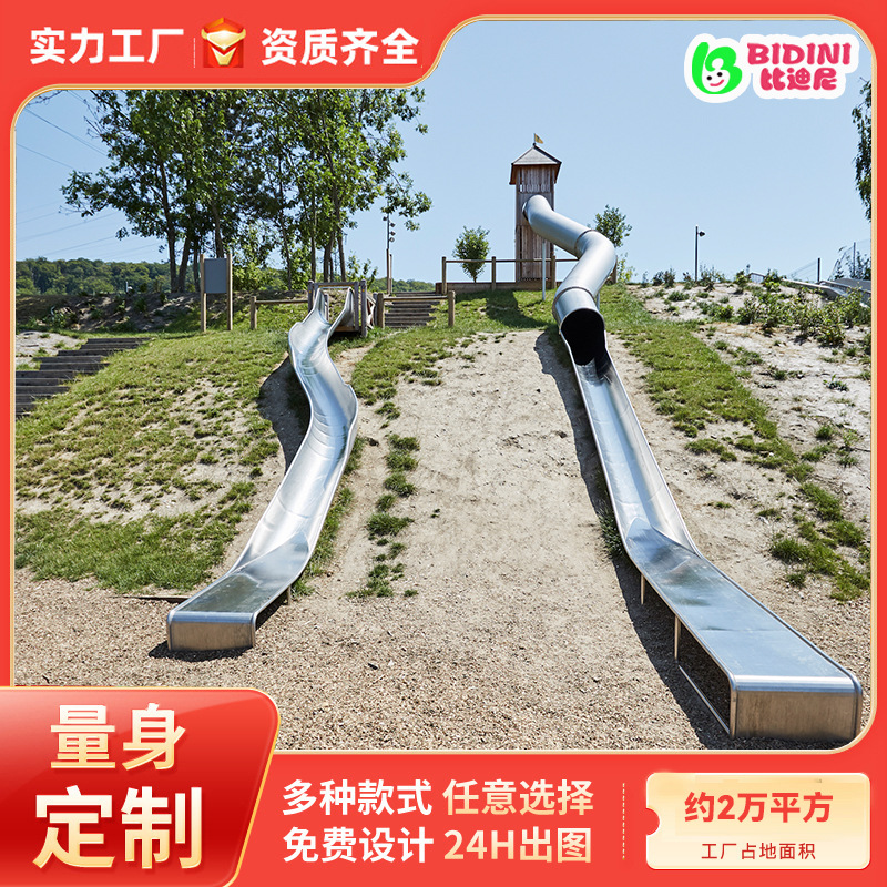Luar Ruangan Besar Slide Anak Bulat Fasilitas Hiburan Tidak Ada Daya Peralatan Bermain Baja Tahan Karat Non-standar Slide Kustom