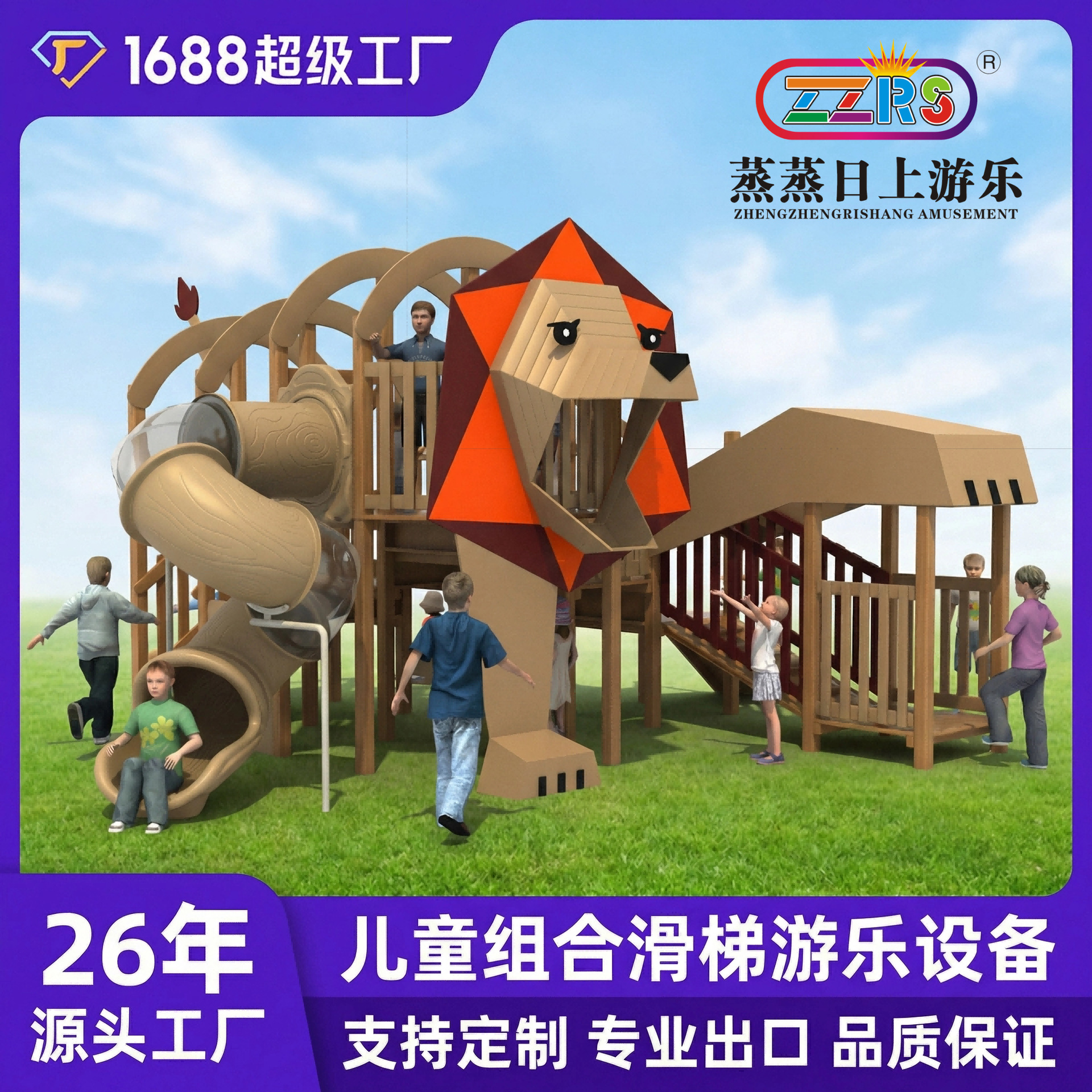 Wow! Fasilitas hiburan tanpa tenaga, perosotan kombinasi luar ruangan seri hutan, perosotan dan rangka panjat untuk anak-anak TK.