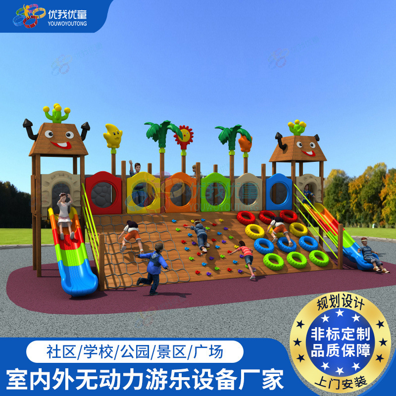 Perosotan besar luar ruangan untuk anak-anak, perlengkapan tempat bermain taman kanak-kanak, kombinasi panjat tebing kayu