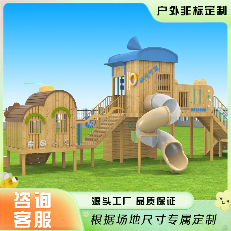 Seluncuran besar luar ruangan non-standar Kustom tali panjat anak slide fasilitas mainan bermain