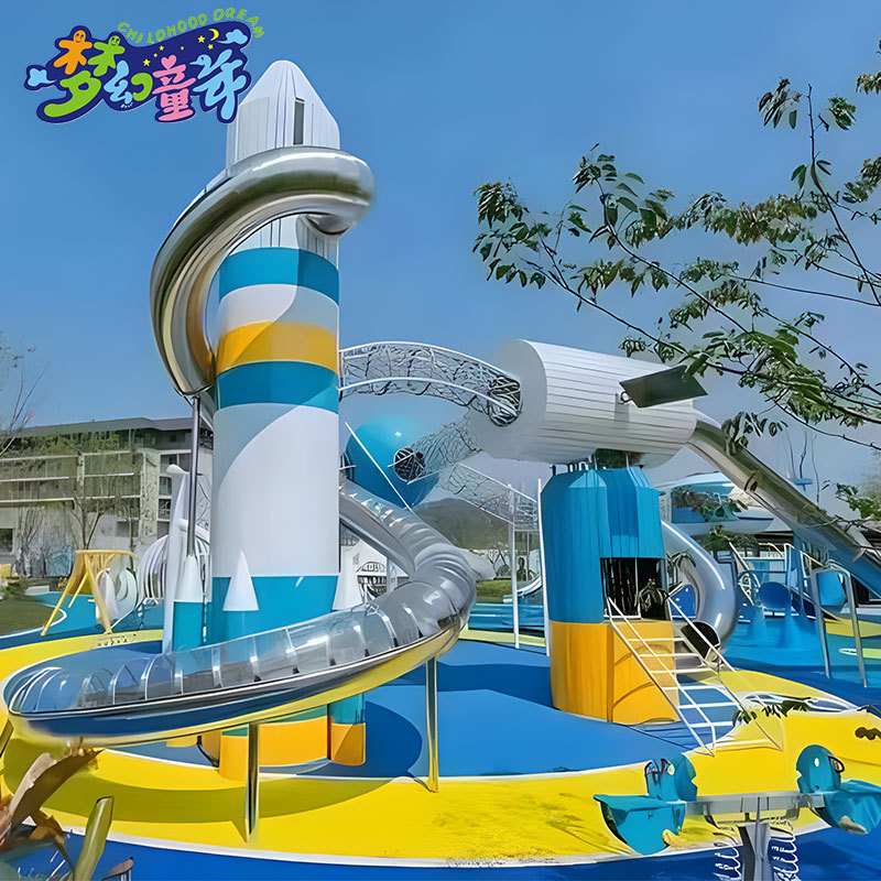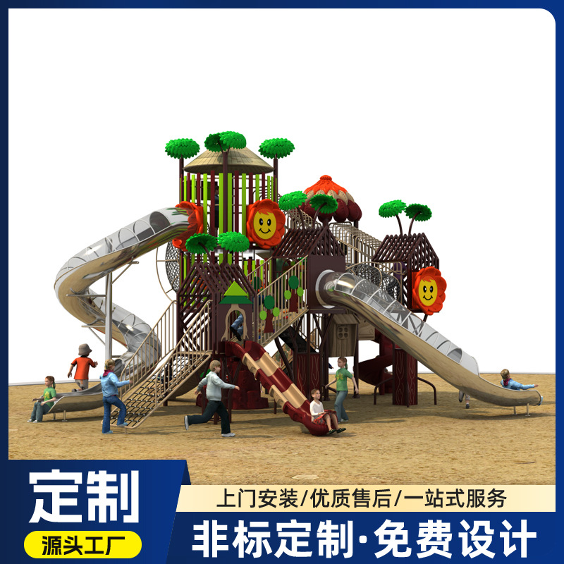 Komunitas langsung pabrik luar ruangan peralatan hiburan kelas atas kustomisasi taman pemandangan taman kanak-kanak luncuran baja tahan karat besar