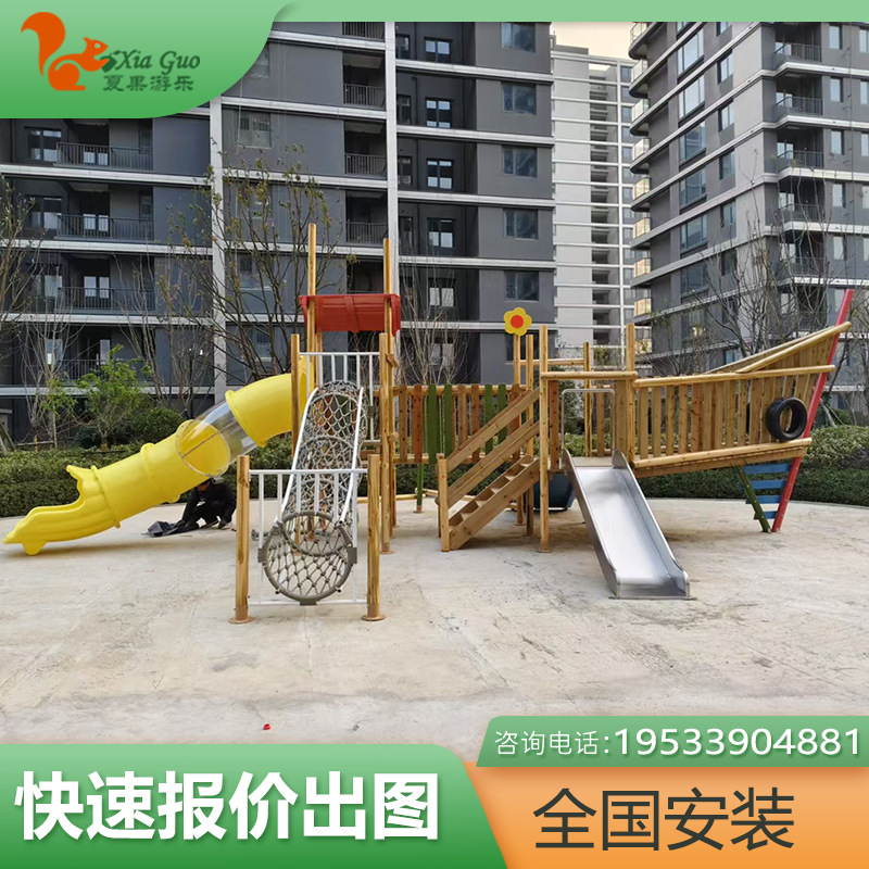 Taman Kanak-Kanak Luar Ruangan Besar Rak Koridor Kayu Kombinasi Seluncuran Kayu Peralatan Bermain Tidak Berdaya Anak-anak Fasilitas Tanpa Standar