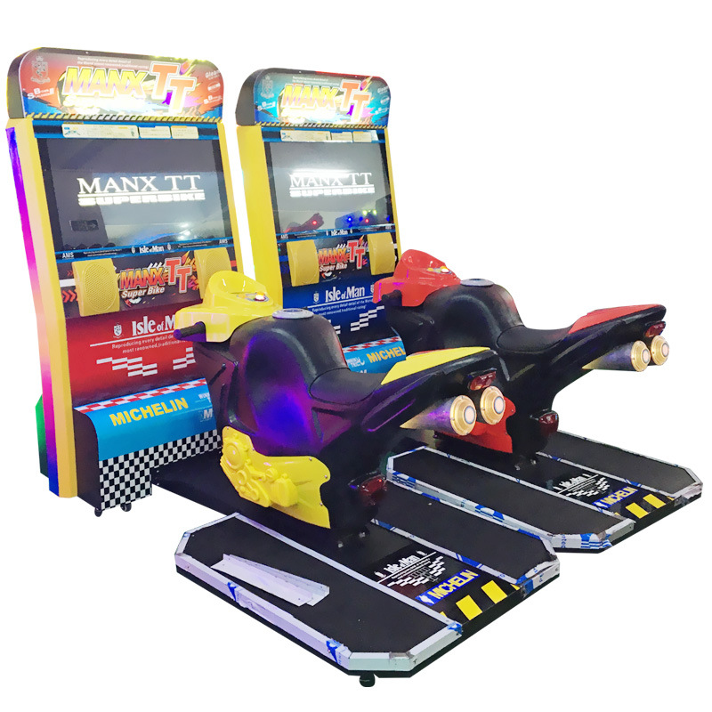 Mesin game balap motor, mesin permainan balap motor double TT besar, mesin video game anime kota, peralatan senapan