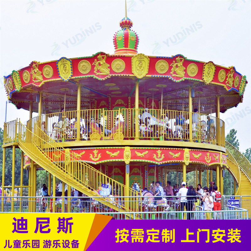 Carousel Ganda Anak-anak Bermain Bahan Baja Kaca Dinis 48 Orang Naik Kuda Putar Mewah