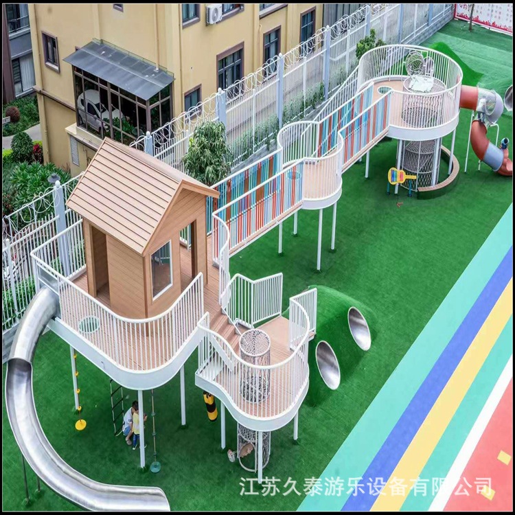 Guqi Luncur besi tahan karat luar ruangan besar peralatan hiburan tanpa daya standar perosotan selebriti Internet kombinasi taman anak-anak