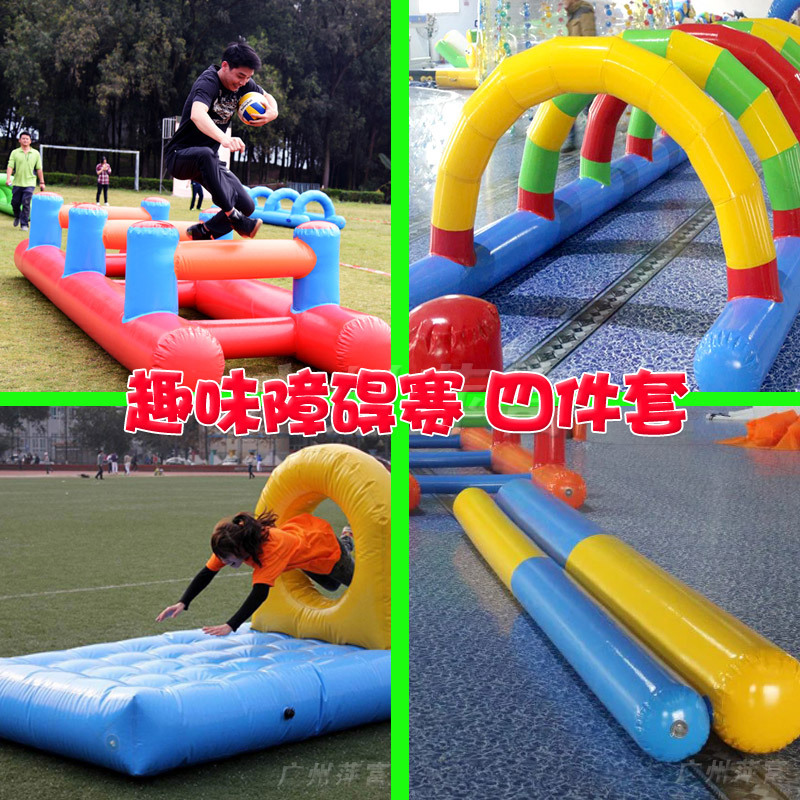 Menyenangkan alat peraga olahraga Super rintangan balap tiup rintangan empat potong jaring berlian ikan melompat gantry rintangan balok keseimbangan