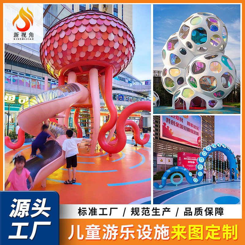 Taman persegi besi tahan karat tempat indah peralatan hiburan tanpa daya FRP besar fasilitas hiburan anak-anak