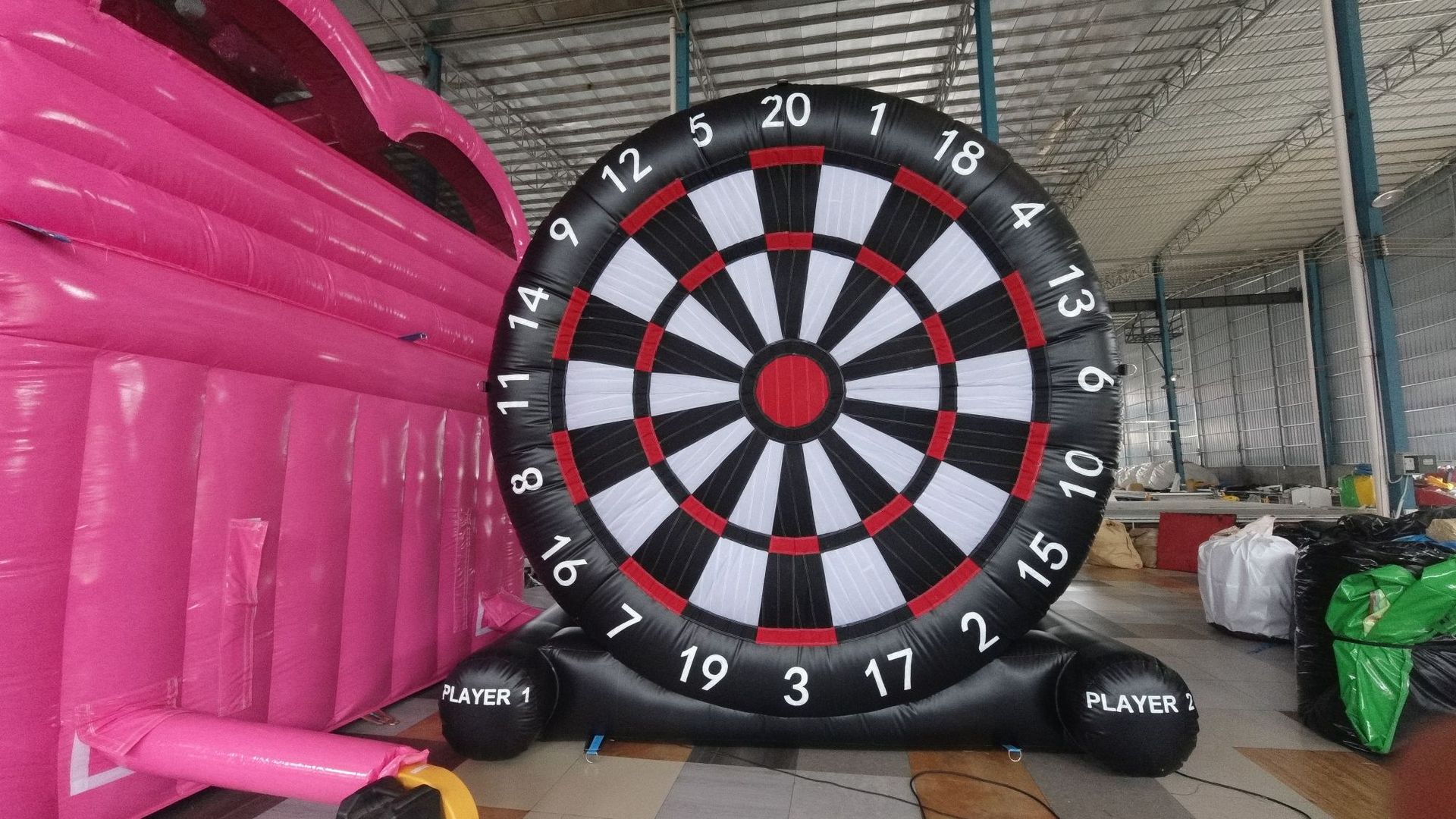 Alat peraga permainan yang menyenangkan mengembang untuk menangkap babi dan berlari seiring waktu