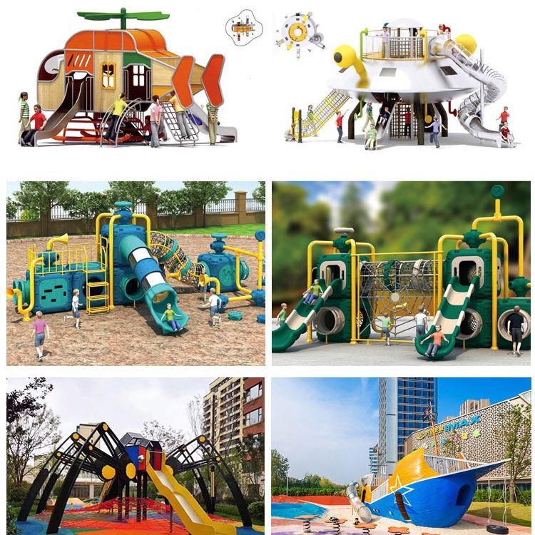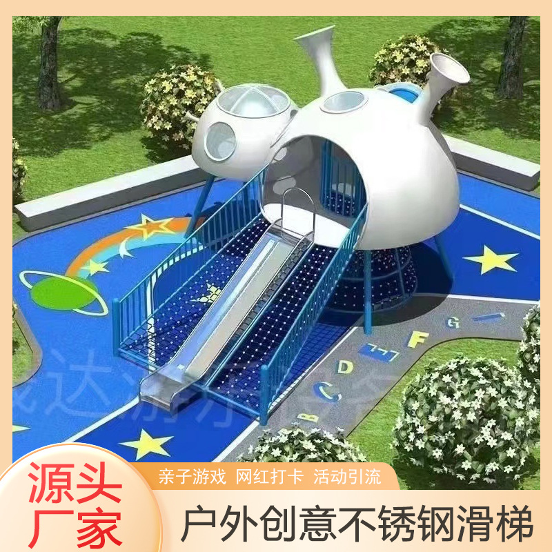 Tempat bermain kreatif besar baja tahan karat seluncur peralatan hiburan permainan orang tua anak fasilitas drainase tempat bermain anak