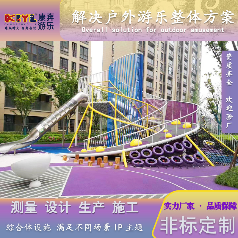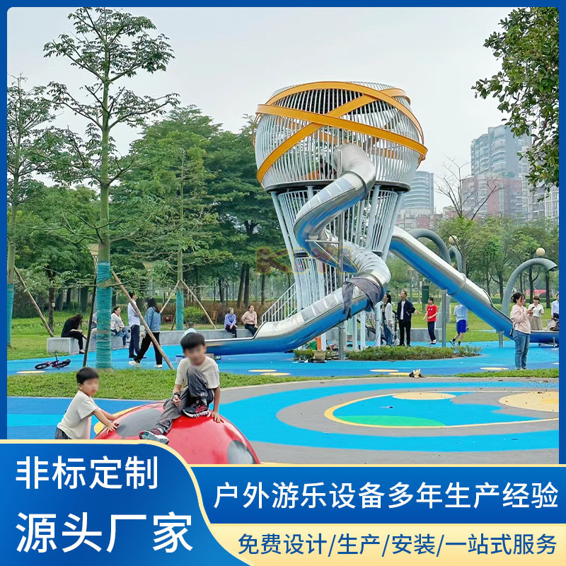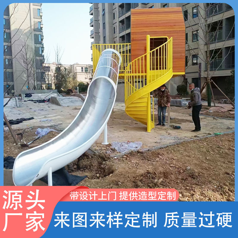 Komunitas luar ruangan perlengkapan hiburan geser baja tahan karat tidak standar Taman tanpa daya produsen fasilitas ekspansi luar ruangan