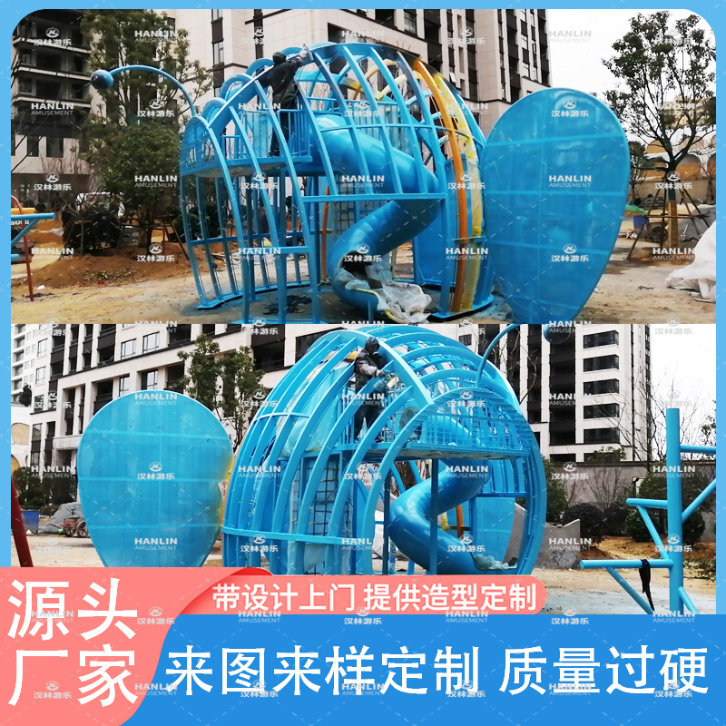 Besar gajah nonstandar kombinasi baja nirkarat geser luar ruangan real estate tanpa daya peralatan hiburan menggambar sampel produksi