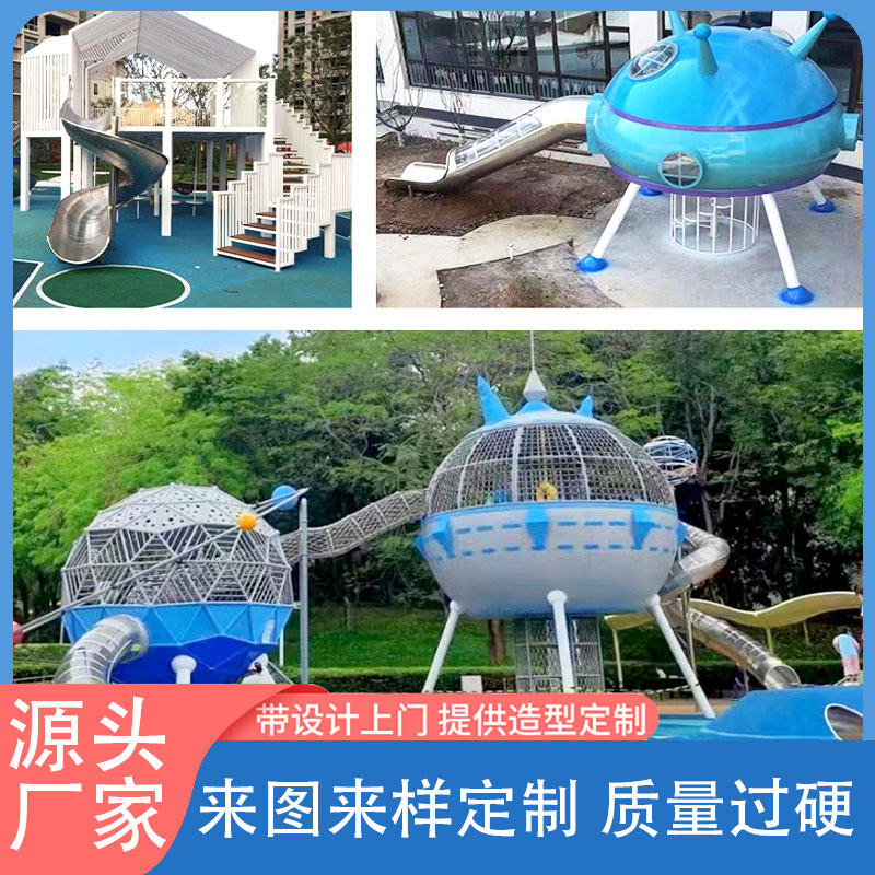 Kombinasi berputar baja nirkarat geser pemandangan taman kanak-kanak luar ruang pemodelan UFO peralatan hiburan anak-anak