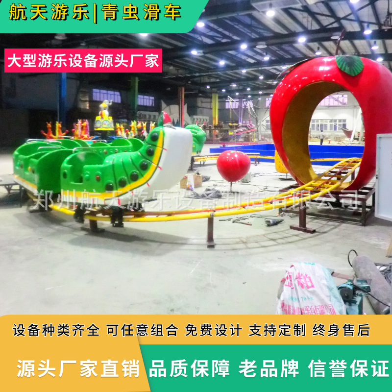 Peralatan hiburan luar ruangan besar penjualan langsung dari pabrik roller coaster cacing hijau perlengkapan hiburan kereta api rel baru