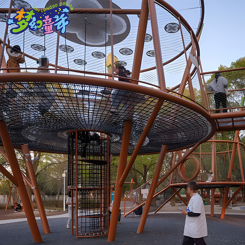 Peralatan hiburan besar tidak standar luar ruangan tali kustom bingkai panjat tebing baja tahan karat lubang pengeboran desain taman tema anak-anak