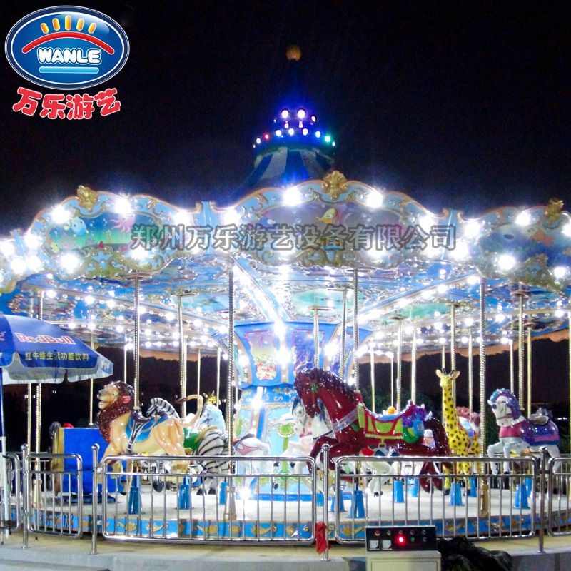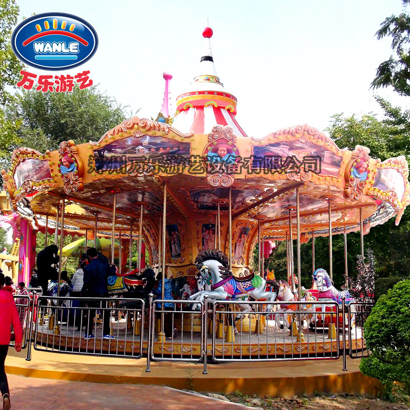 Wanle carousel 34 tempat duduk 30 besar, peralatan taman hiburan luar ruangan produsen fasilitas hiburan
