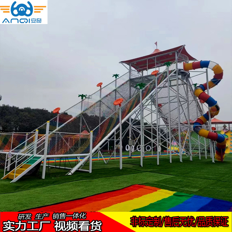 Peralatan hiburan besar tanpa daya di tempat indah, tempat bermain anak-anak luar ruangan, mainan awan lompat anak-anak