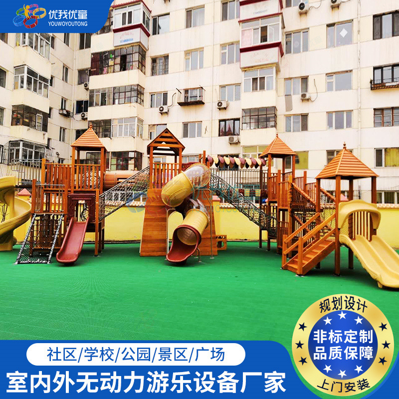 Perosotan kayu besar anak-anak, perlengkapan hiburan panjat tebing, kombinasi area pemandangan luar ruangan taman kanak-kanak